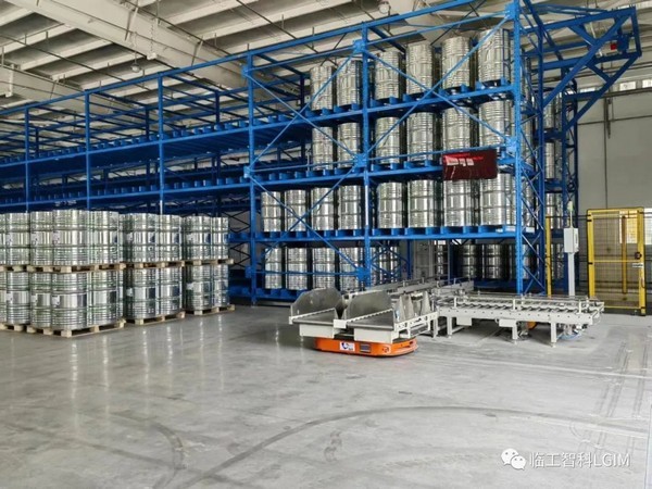 该项目服务于国内知名化工企业,包含空桶输送分拣系统、立体库存储系统、AGV配送系统、罐装系统,以及配套的WMS、一卡通系统。 整体设备实现了空桶的存储、自动化灌装、自动紧盖、自动封盖、成品自动入库、成品发货时自动码垛、自动捆扎,全流程生产自动化。